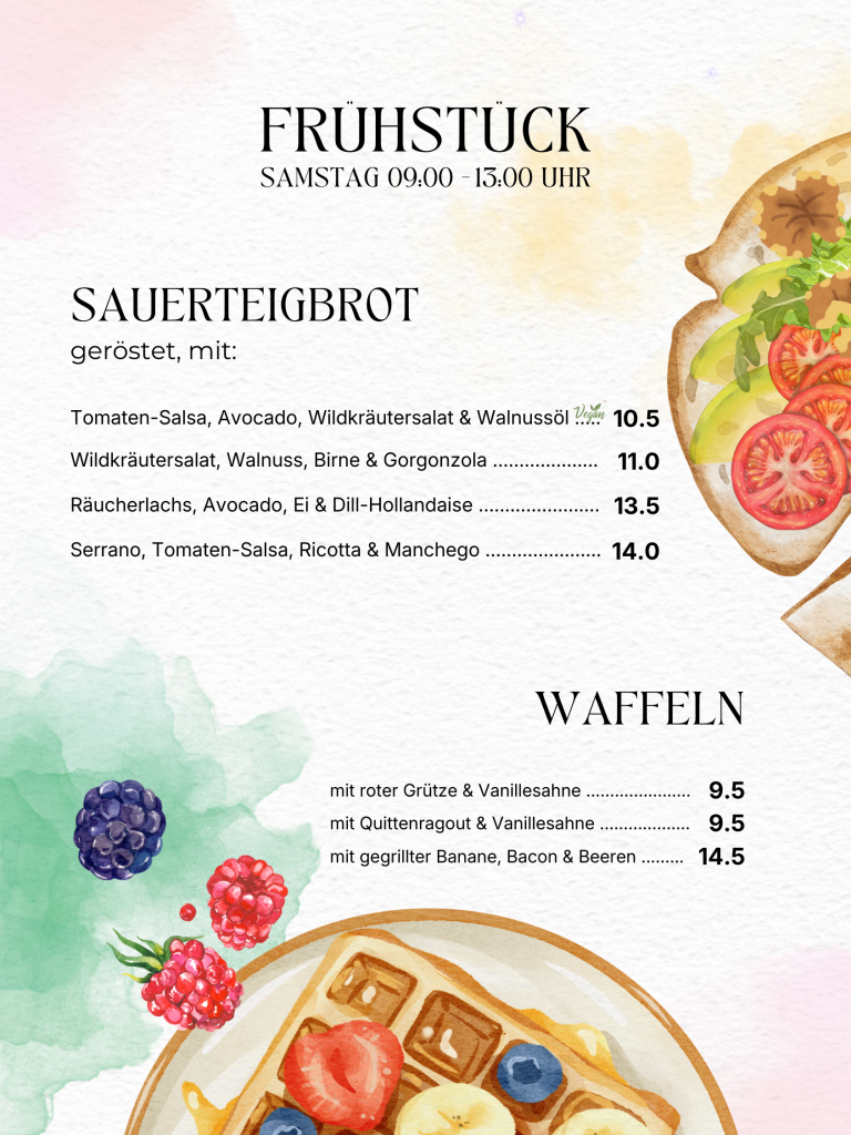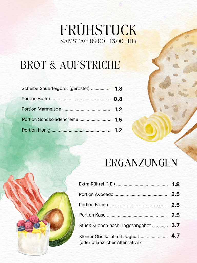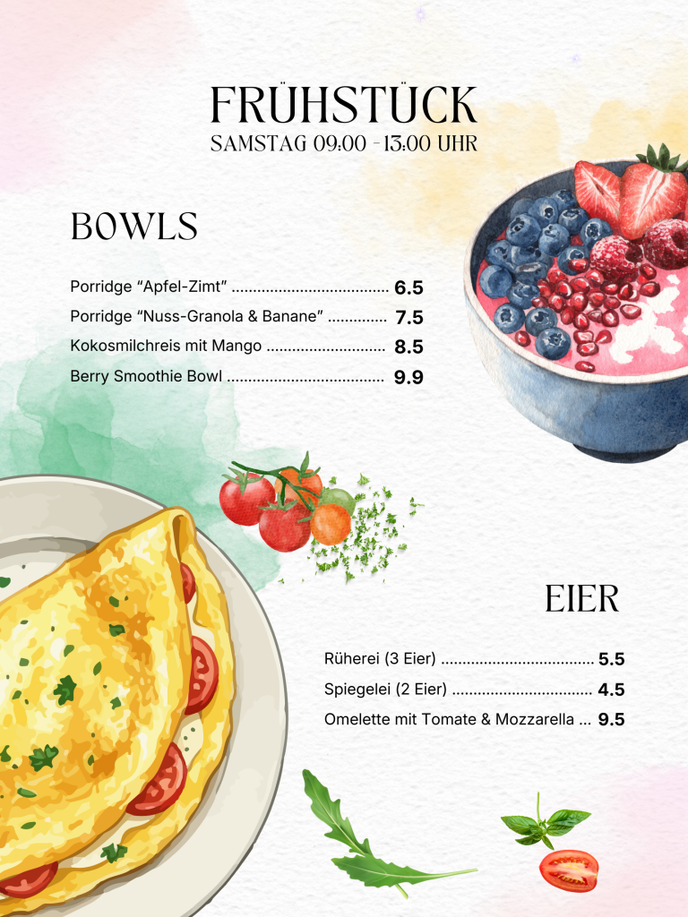 Jeden Samstagmittag – zwischen 09:00 und 13:00 Uhr könnt ihr unser abwechslungsreiches À-la-carte-Frühstück genießen.